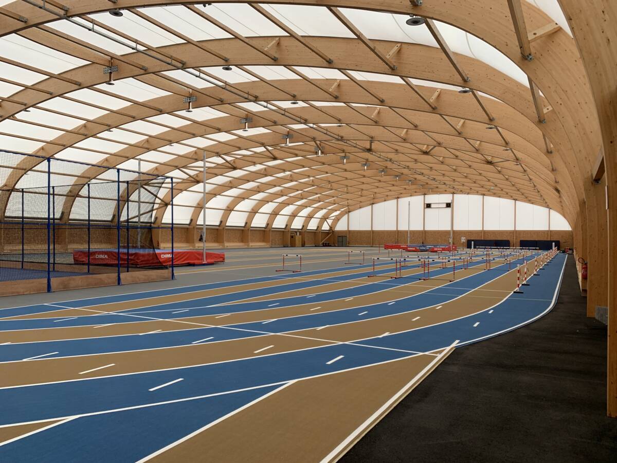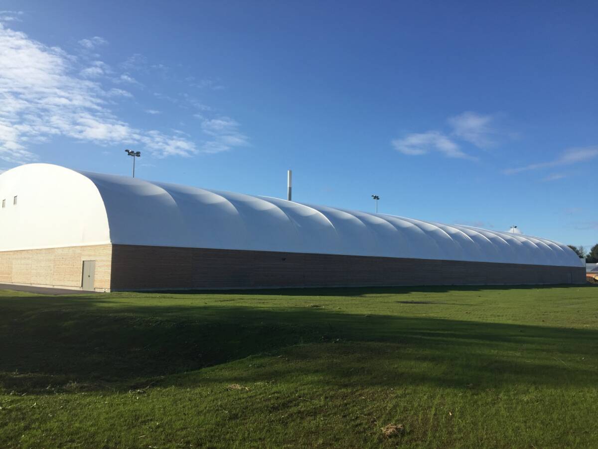 SMC2 built a 46 x 96 m athletics hall with a textile membrane roof. Fabric was chosen for its acoustic, lighting and thermal qualities. Athletes can train all year round on these athletics tracks in optimum conditions without worrying about the weather. The sound doesn’t reverberate off the walls, thanks to the flexibility of the lightweight envelope. Its translucency allows natural light to illuminate the sports hall, without the need for artificial lighting during the day. Its white colour reflects the sun’s rays to maintain a pleasant ambient temperature in both summer and winter.