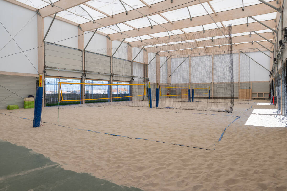 The building includes 65ft linear of sectional doors on each side, allowing for generous openings to the outdoors. These openings provide effective natural ventilation, essential for user comfort throughout the year. They also create a direct connection to the outside environment, in keeping with the original spirit of sand sports, which are inherently outdoor activities. Thanks to these doors, users enjoy a sense of space, light, and freedom, reconnecting with the essence of the sport while remaining protected from the weather.