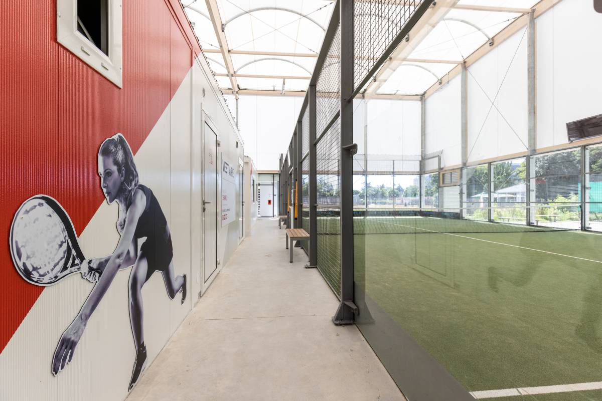 The Tennis Club Dijonnais has diversified its sports offering by adding a connected padel hall to its tennis complex. The bright, connected building has 2 padel courts with changing rooms and a social area in between. The structure is made of wood and the roof is covered with a textile membrane. The windows, which are the playing elements for the padel courts, are also the building’s cladding. As a result, padel enthusiasts have access to the padel courts all year round, protected from the elements and the sun, while remaining connected to the outside environment. They benefit from a unique digital experience for greater autonomy, sharing and monitoring.