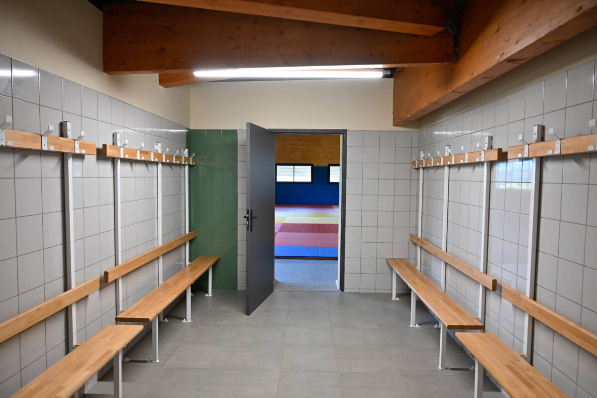 The gymnasium is heated by gas-fired radiant heaters. Storage spaces have been integrated into the structure to save as much space as possible. The dojo and changing rooms are covered in perforated, black-lacquered insulated steel troughs. Heating is by hot-water radiant panels. The air is treated with a dehumidifier and air extractor in the upper section to provide maximum comfort for users.