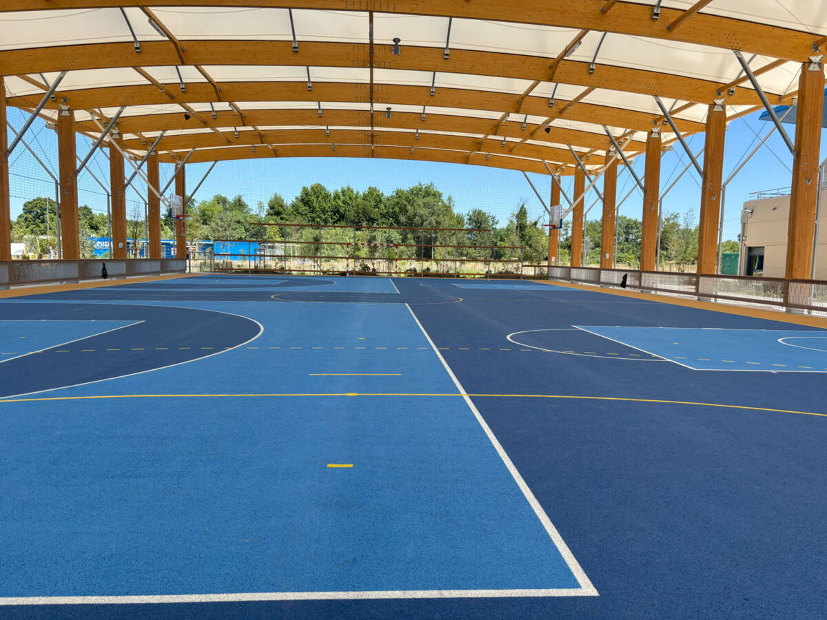 Designed as a shared sports facility, the canopy is equipped to host multiple disciplines: