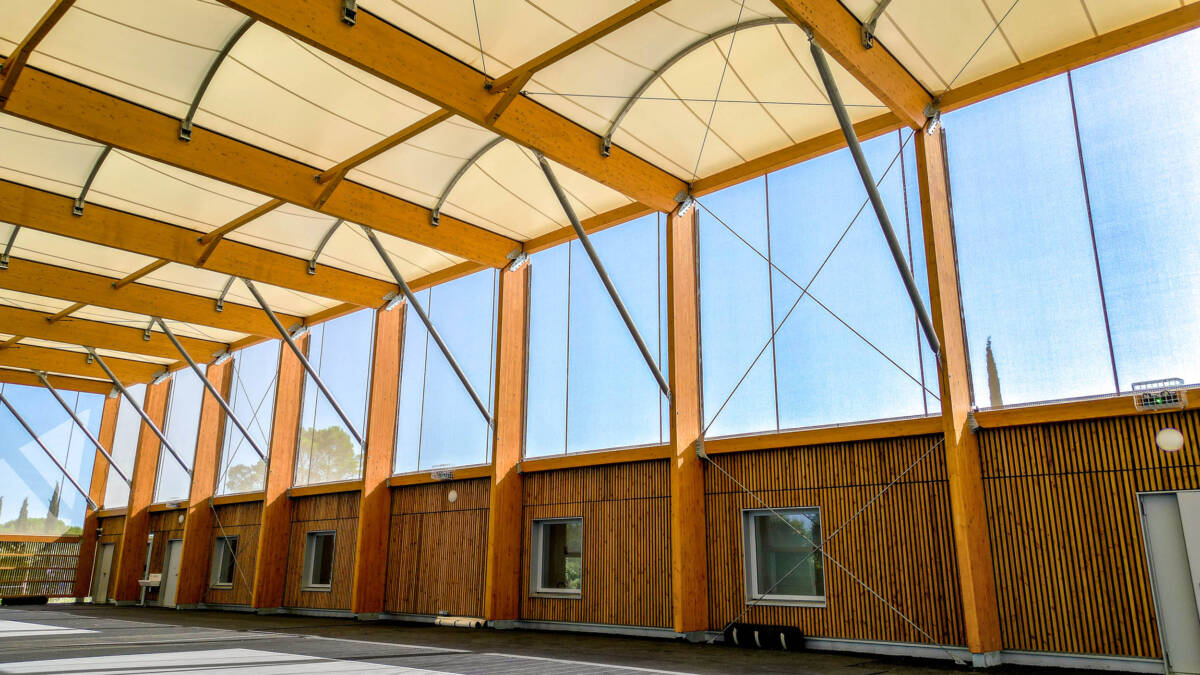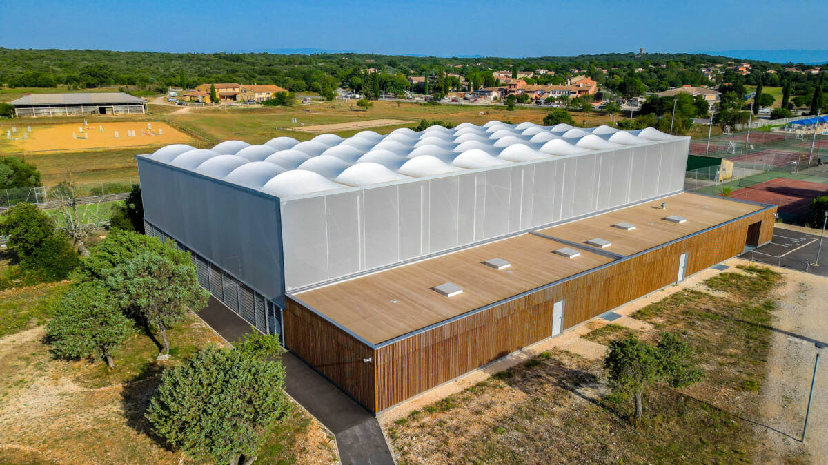 SMC2 presents the new 1,220 m²/13 128FT² sports canopy in the town of Méjannes-le-Clap, in France—a modern and functional space that blends perfectly into the local landscape.