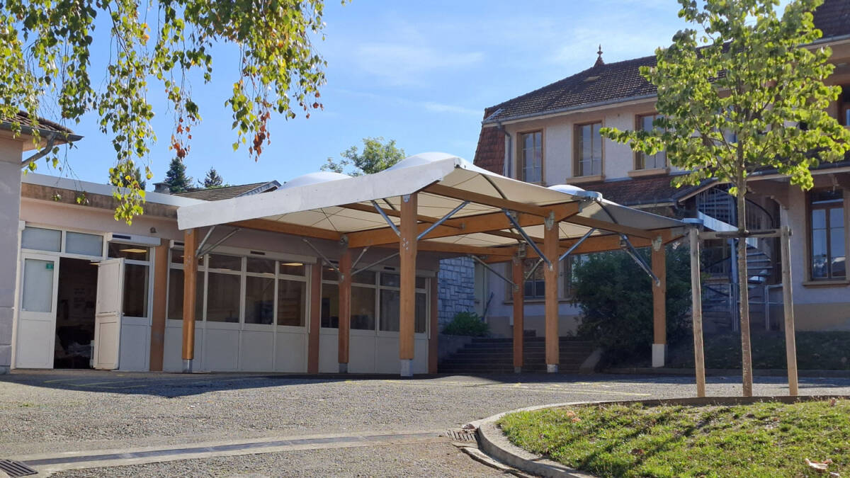 Two new covered school canopies for the Boncelin preschool and elementary school in Aix-les-Bains in France