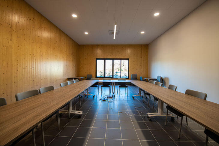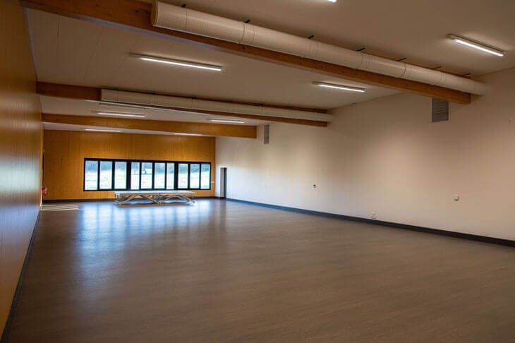 The building also includes an expression room (gymnastics, dance, pilates, yoga, fitness), a meeting room, changing rooms, technical rooms and an entrance hall.