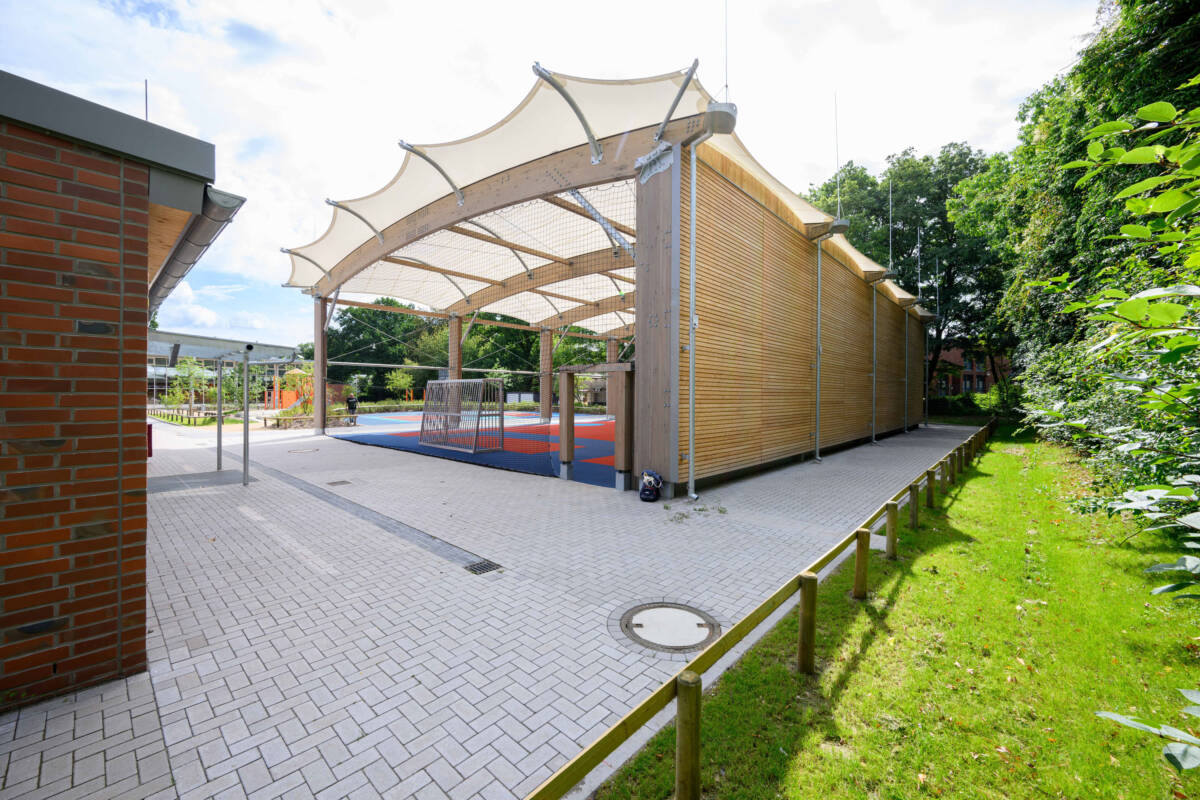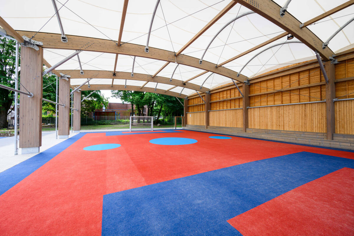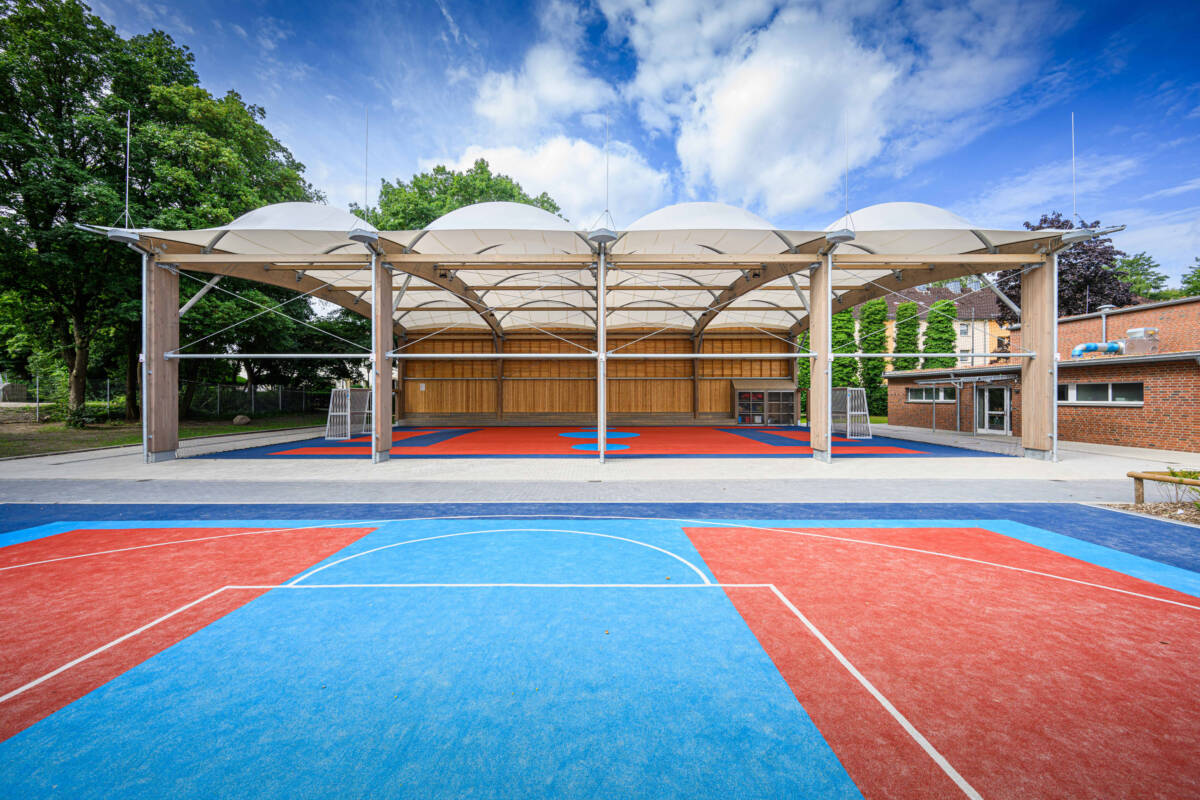 Construction of a multi-sports arena in a school playground in Hamburg (Germany), the third to be built by SMC2!