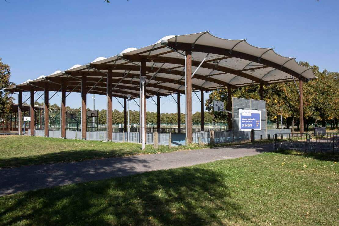 Creation of a two basketball court hall in the Parc de la Courneuve.