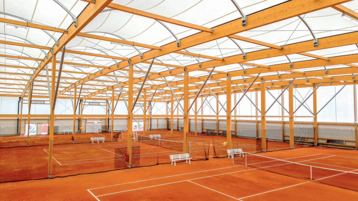 The use of wood in the structure brings a warm, natural aesthetic while delivering excellent mechanical performance and a reduced carbon footprint. The tensioned fabric maximizes natural light, reduces the roof’s weight, and creates a bright, pleasant atmosphere—ideal for sports activities. These technical choices reflect a commitment to sustainable and innovative construction.